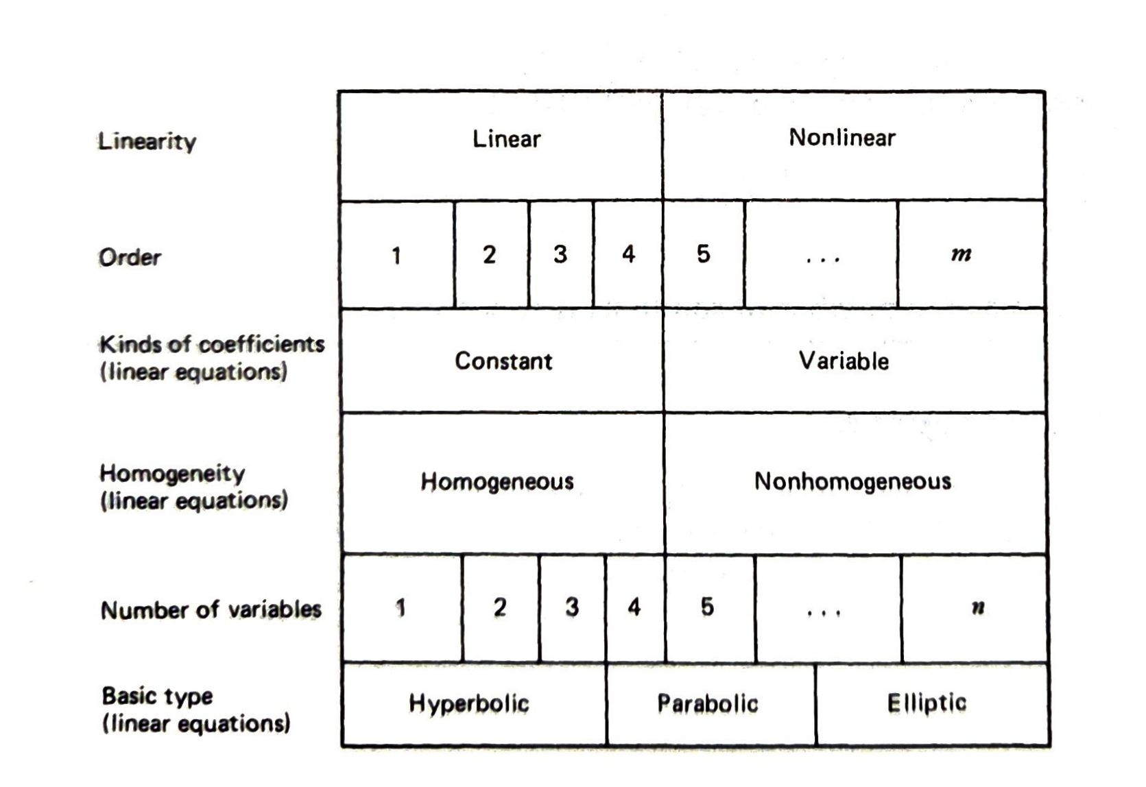 Classification is an important concept because the general theory and methods of solution apply only to a given class of equations. \(\,\)Six basic classifications are:
